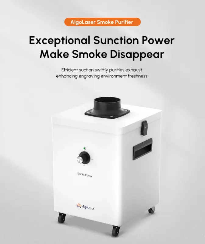 The Algolaser Smoke Purifier is designed to provide superior air filtration for laser engraving and cutting machines, ensuring a cleaner, safer workspace. Equipped with advanced filtration technology, this air purifier effectively removes smoke, dust, and harmful fumes produced during engraving and cutting processes. Whether you’re using CO2, fiber, or diode lasers, this purifier ensures optimal air quality and enhances the lifespan of your equipment.